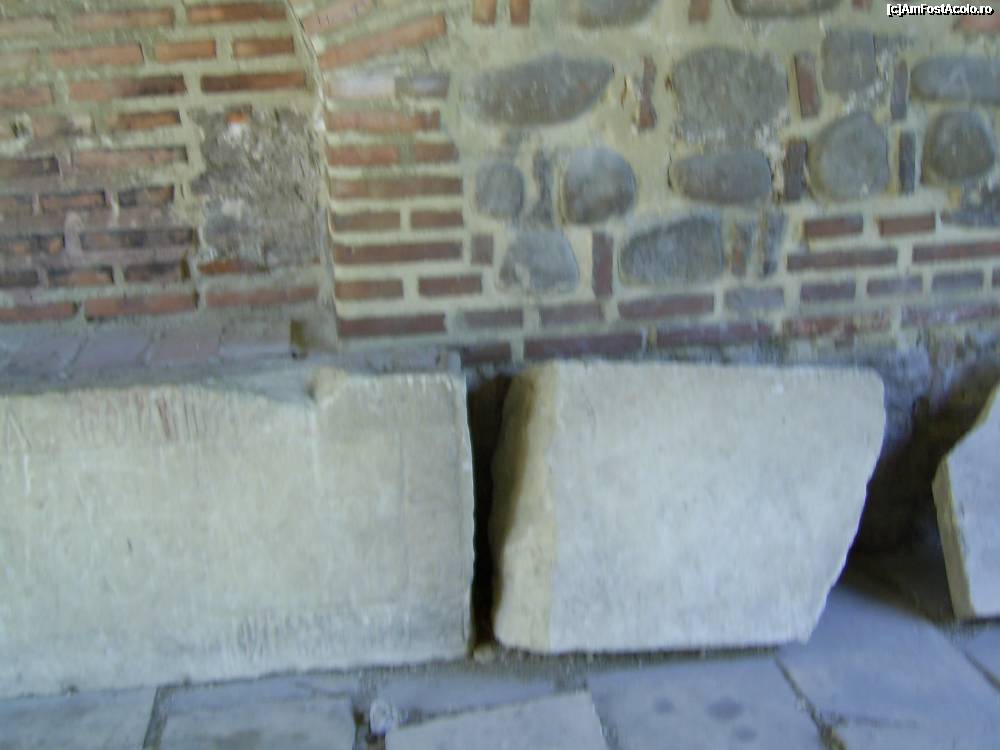 [P25] Manastirea Stelea - Vechi pietre funerare expuse in gangul clopotnitei.