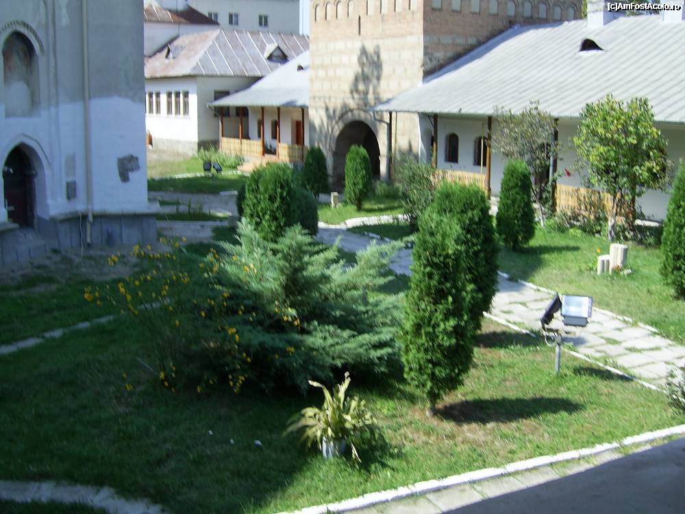 [P26] Manastirea Stelea - Curtea vazuta din pridvorul vechii case egumenesti, in prezent muzeu.