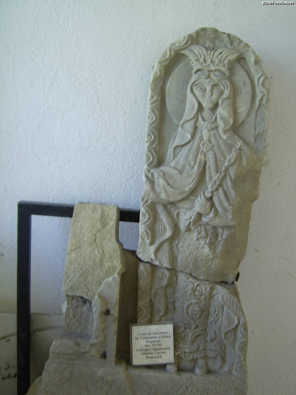 [P04] Muzeul Manastirii Stelea - Fragment de cruce de mormant reprezentand pe Sfintii Constantin si Elena, sec. XVIII.