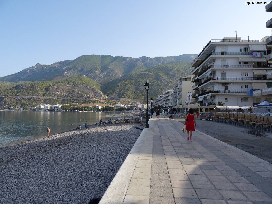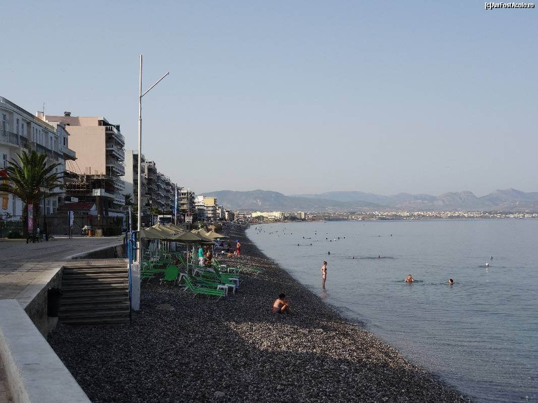 [P63] Loutraki, faleza și alături de ea plaja, la prima oră a dimineții