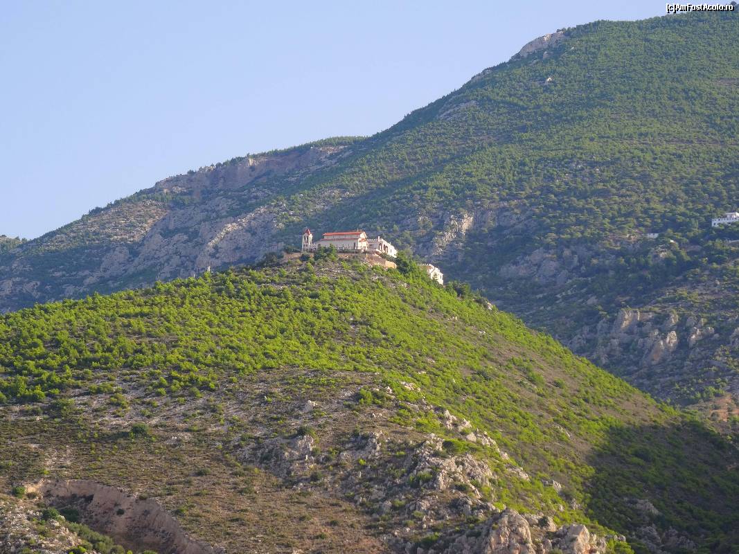 [P60] Loutraki, vedere spre Mănăstirea Sfântul Patapie, aflată sus, pe munte