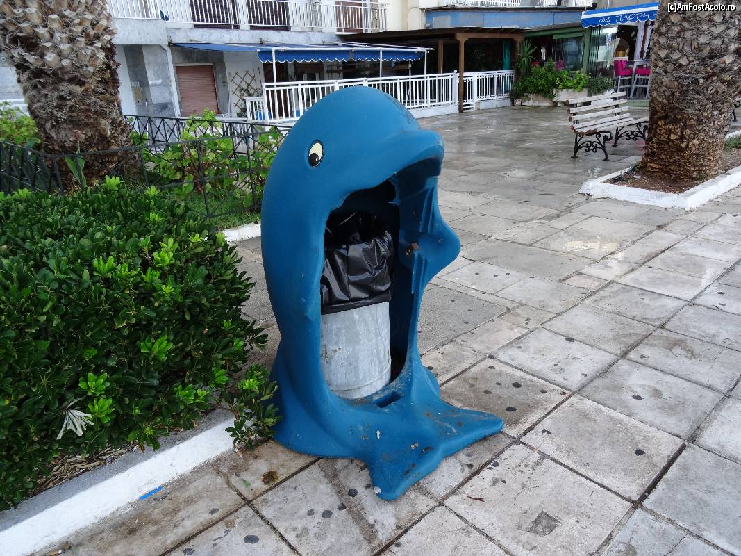 [P65] Loutraki : un coș de gunoi asortat cu faleza și vecinătatea golfului. Foarte nostim!