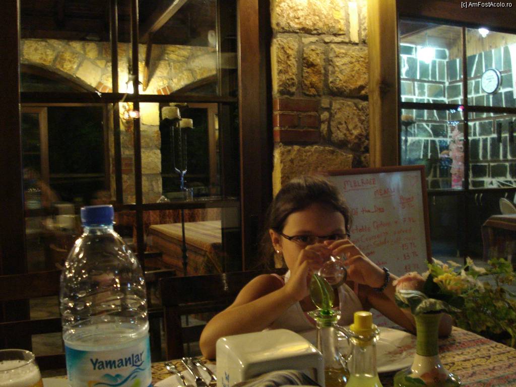 [P04] In asteptarea meniului comandat si ... de atata foame unii nu mai puteau de sete. In fundal sse afla sala de mese (stanga) si bucataria (dreapta).