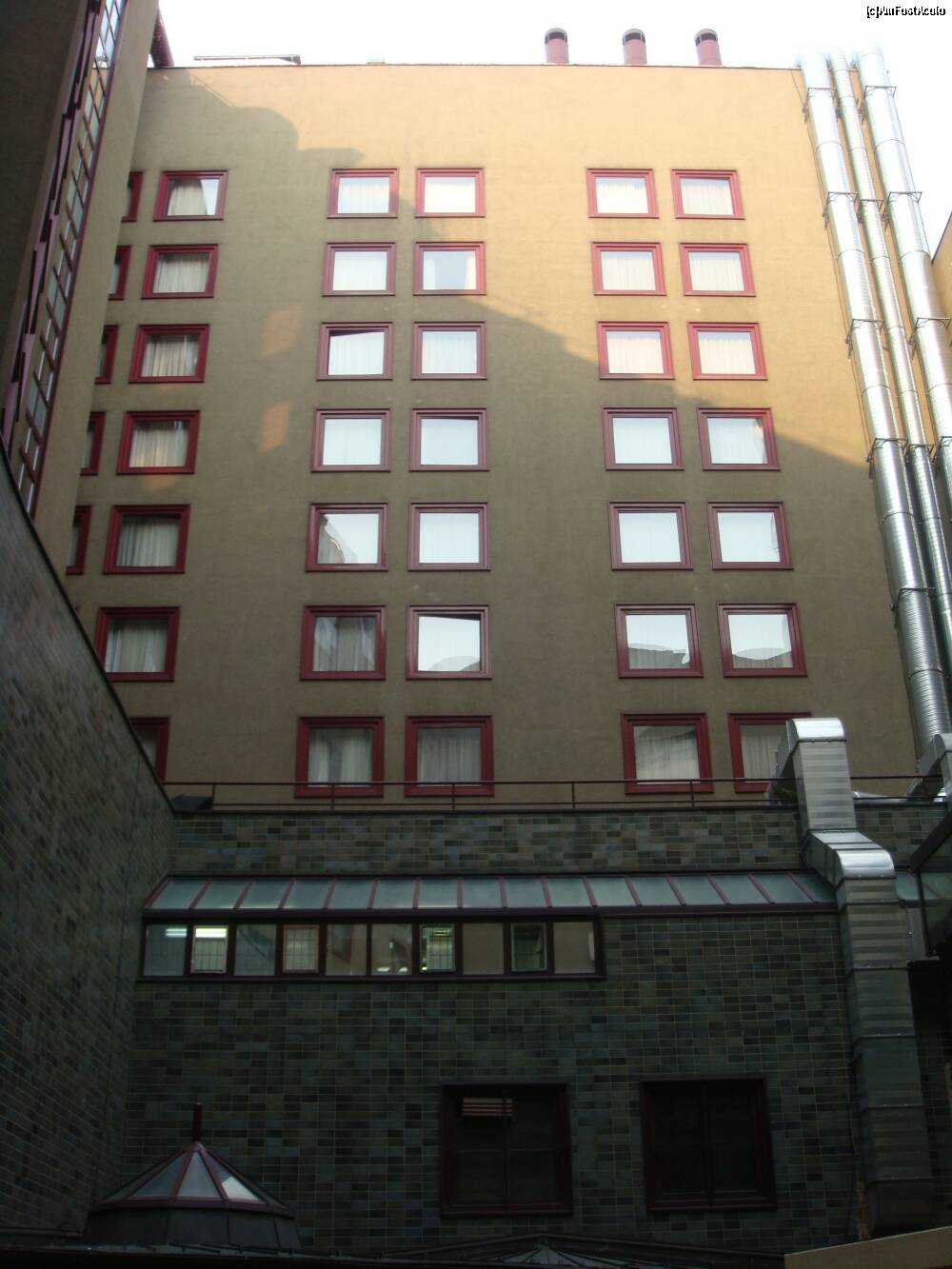 [P04] Hotelul văzut de pe Vaci Utca. Strada fiind destul de îngustă, nu am reuşit să fac o poză cu un cadru mai larg. Noi am stat la etajul 4, se vede în dreapta, fereastra cu lumina aprinsă.