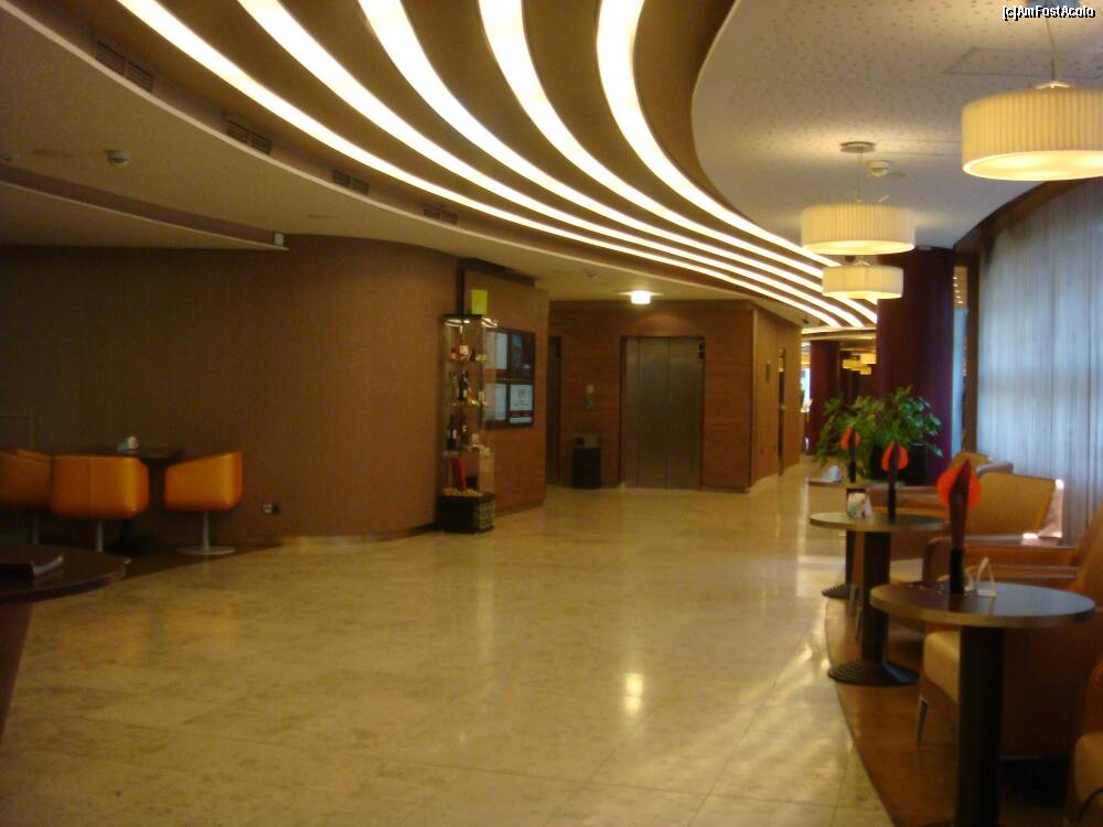 [P06] Poză din lobby, dinspre recepţie, lift, iar în fundal este barul şi ieşirea pe Vaci.