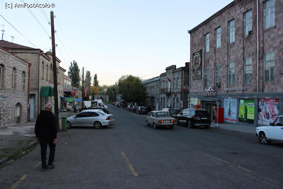[P44] Armenia, Goris, Pe Strada Ankakhutyun aproape de hotelul nostru, se vede în dreapta Supermarket Ararat bine aprovizionat, se însera...