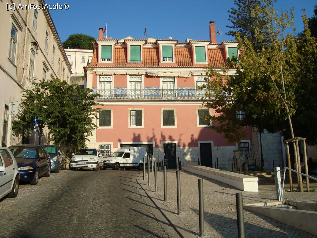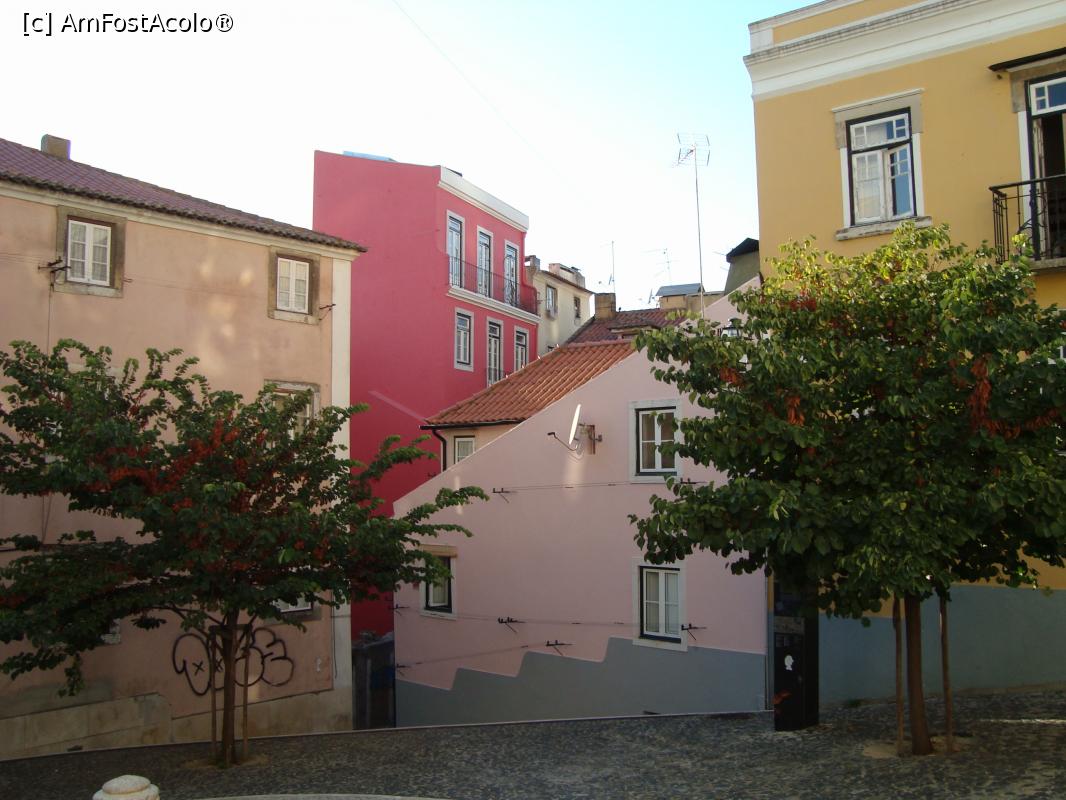 [P01] Mouraria, barrio autentic al Lisabonei vechi, aflat sub poalele castelului -Largo de Achada -un pastel de culori, ador imaginea cu copacii care scot capul din piatră.