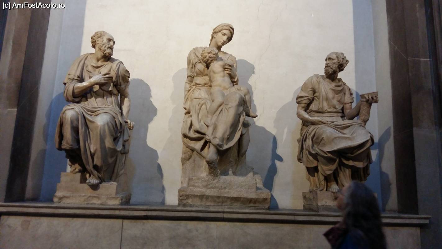 [P03] “Fecioara cu Pruncul” a lui Michelangelo si statuile Sfintilor Cosma si Damian, protectori ai familiei Medici, executate de catre 2 elevi ai lui Michelangelo, Montorsoli si Baccio da Montelupo.
