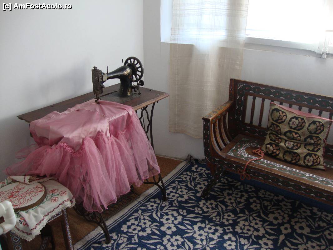 [P31] Printre obiectele expuse am recunoscut mașina de cusut Singer.