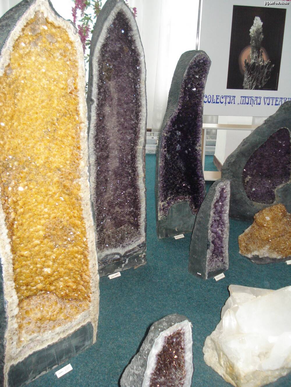 [P18] Cheia - Muzeul " Flori de mina " - geode de citrin( galben ) si ametist ( mov ) . Geoda este o roca in a carui interior s-au depus cristale.