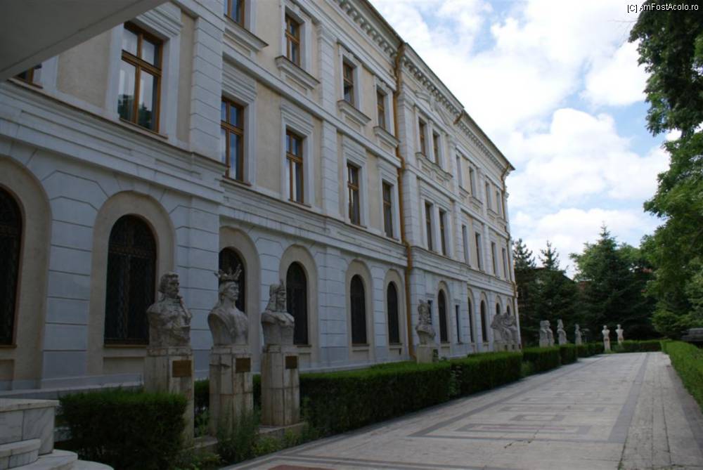 [P04] Imagine de ansamblu a faţadei Pavilionului A, cu şirul de busturi