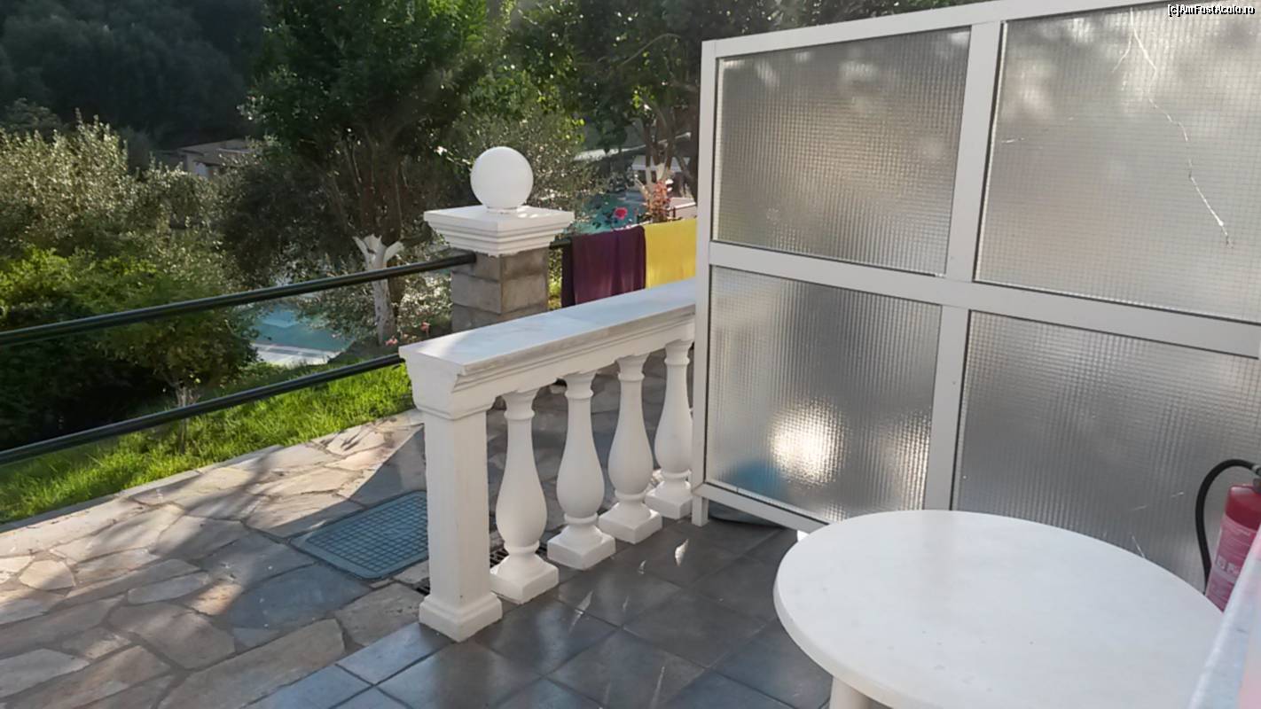 [P02] Balconul camerei de la parter din Niouris Marina, Agios Gordios, August 2013