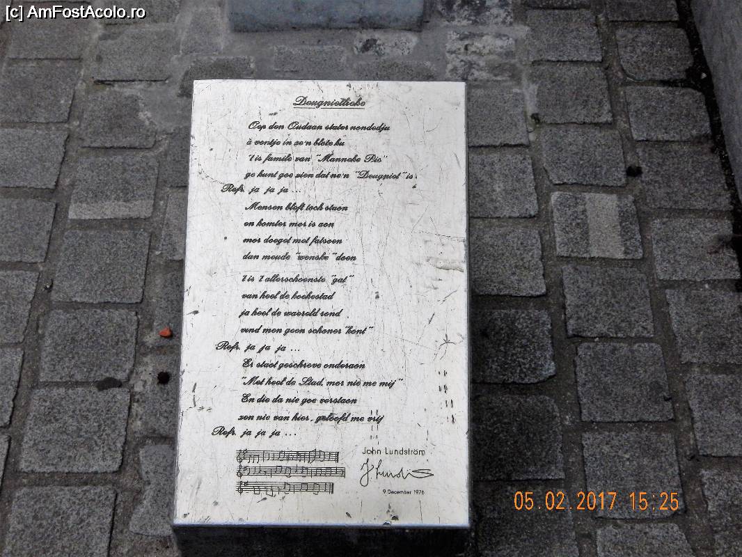 [P14] La baza statuii, pe caldaram, era o placa cu versurile unui cantec in limba neerlandeza, niste note muzicale, un nume si o semnatura: John Lundströrp