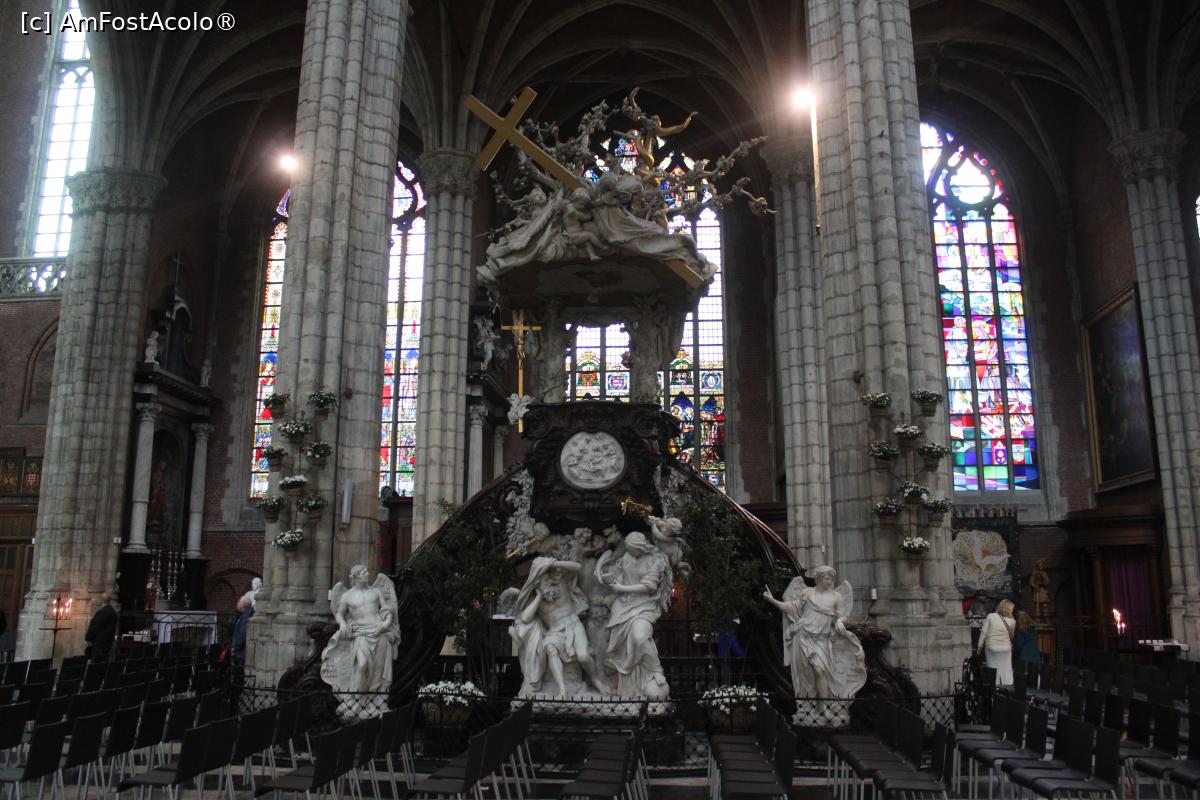 [P30] Gent, Catedrala Sf. Bavo, Amvonul rococo de la mijlocul secolului 18 realizat din stejar aurit, marmură albă și neagră...