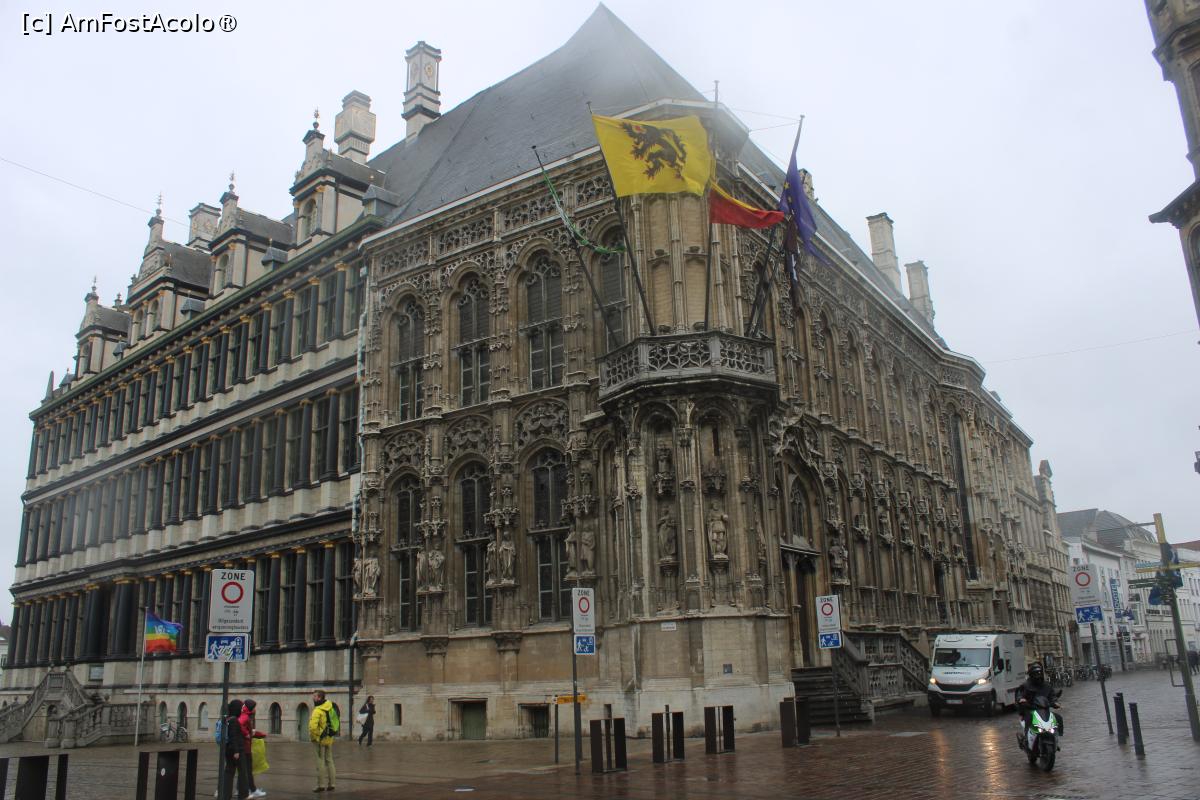 [P46] Gent, Stadhuis (Primăria) formată din două clădiri, una stil gotic târziu flamboyant, cealaltă renascentist