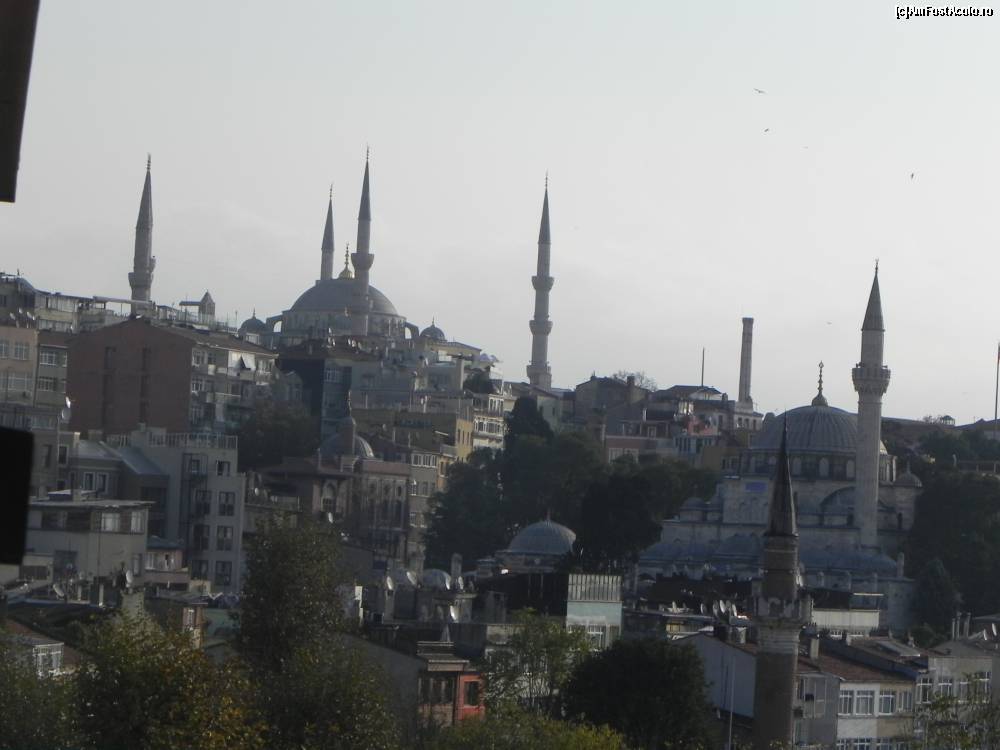 [P24] Zoom către centru. Se disting clar în peisaj Moscheea Sokollu Mehmet Paşa (un bosniac care a fost Mare Vizir 15 ani, sub 3 sultani, inclusiv Soliman Magnificul) şi Moscheea Albastră (Sultanahmet).