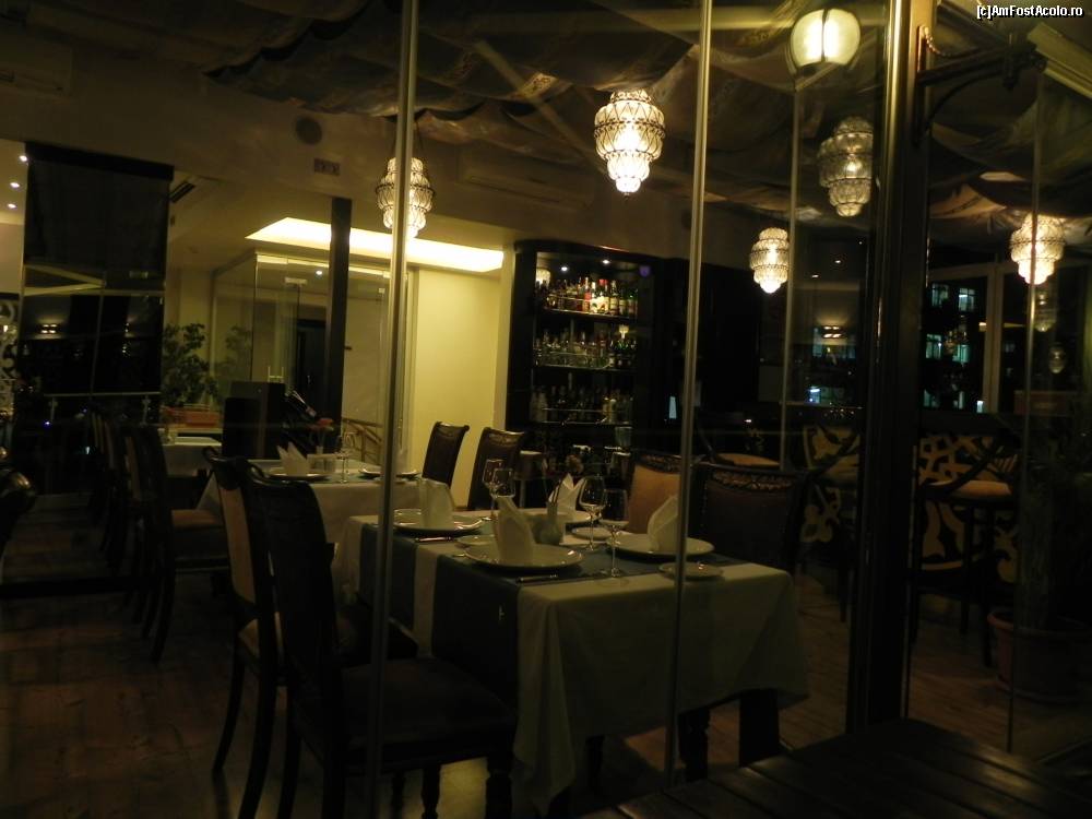 [P28] Salonul interior al restaurantului fotografiat de pe terasă. După cum se vede, eram singuri la acea oră.