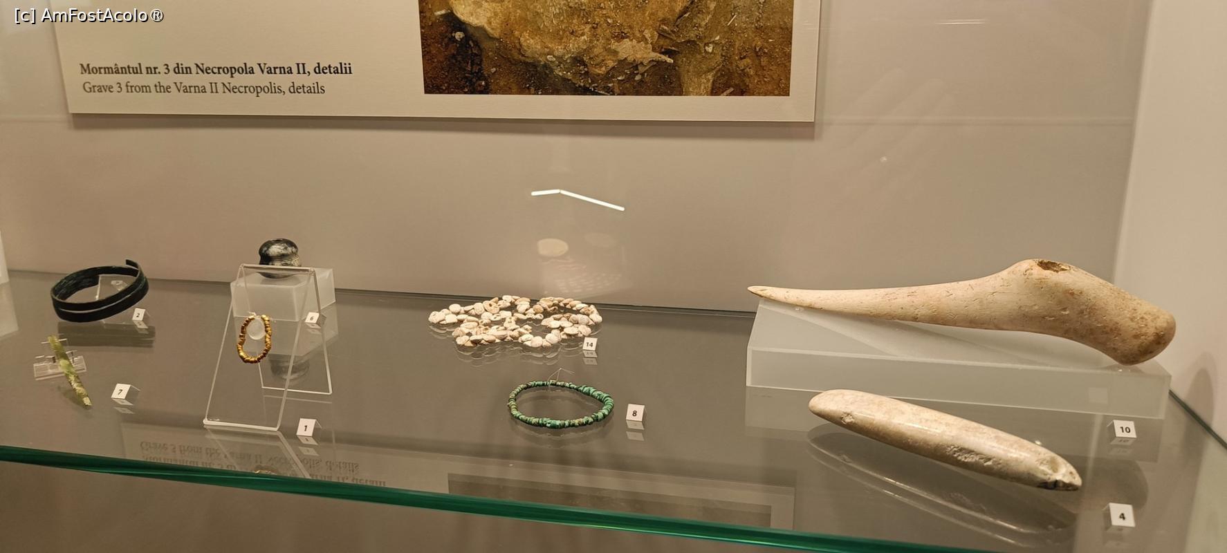 [P09] Inventar mormânt din epoca târzie a crupului - observați amuleta antropomorfă din aur (Necropola Varna I).