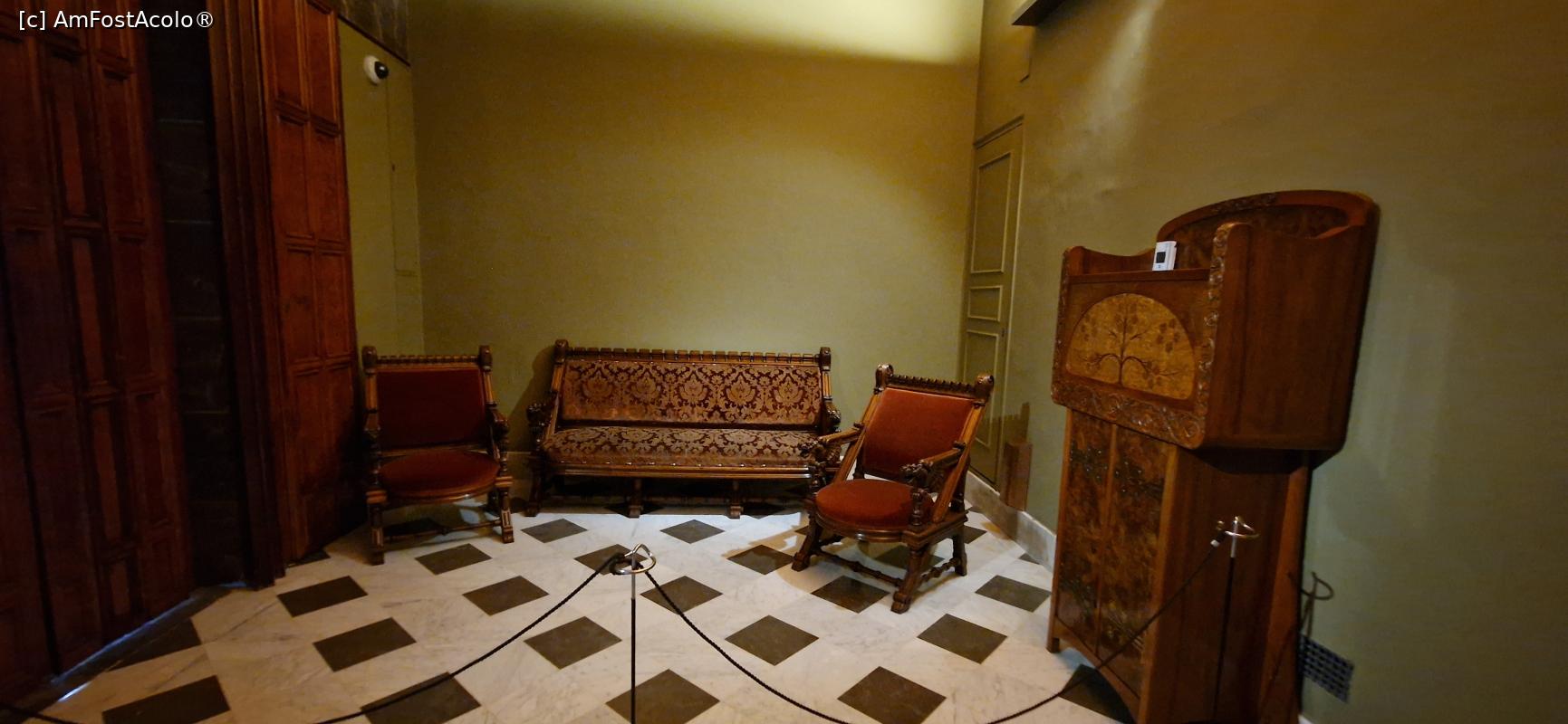 [P30] 30. Canapeaua cu spătarul sculptat în lemn, aflată pe un hol.