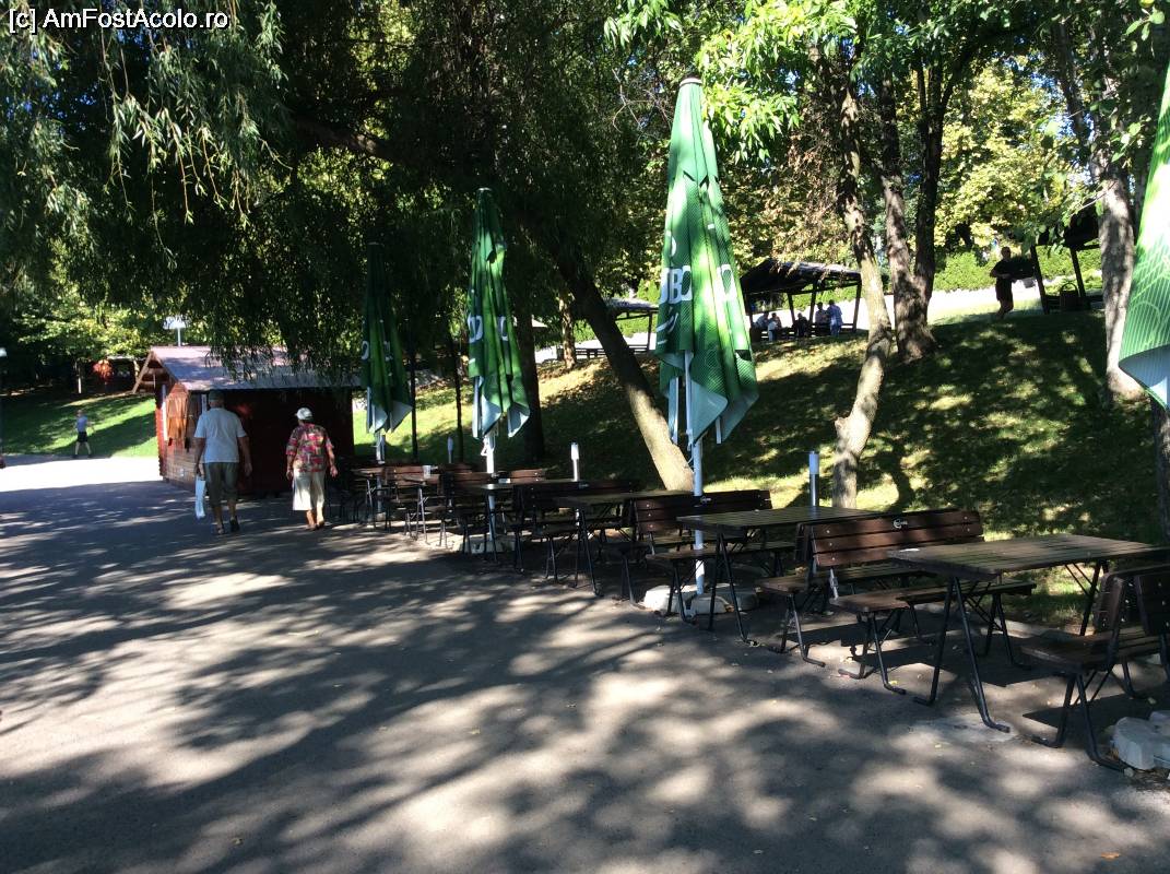 [P25] Terasele isi asteapta clientii, iar in spate se vede trenuletul.