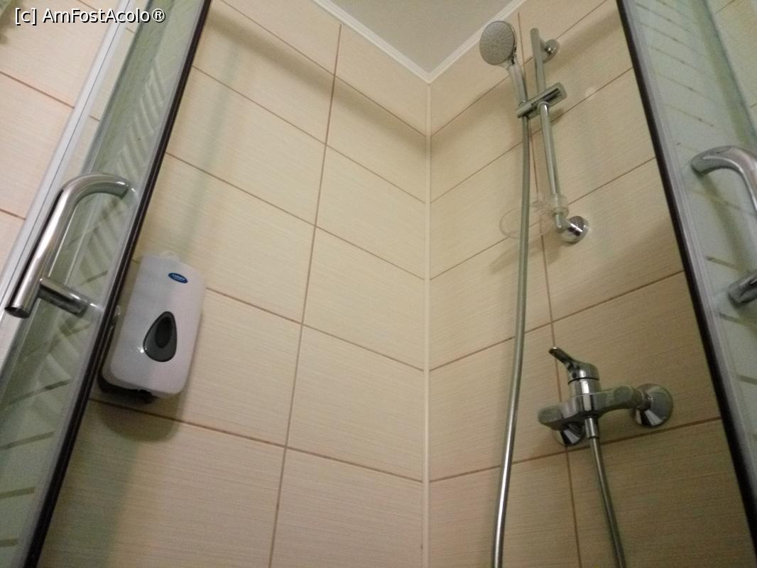 [P20] Pensiunea Andreea 3* din Baia de Fier, cabina de dus cu recipienul pentru sapunul lichid