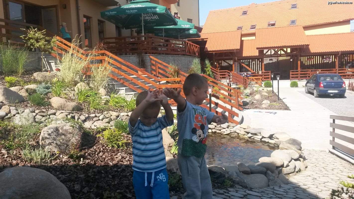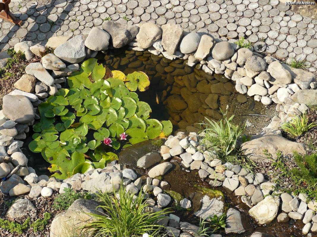 [P07] Loc amenajat in fata pensiunii, un micut lac si cativa pestisori in el