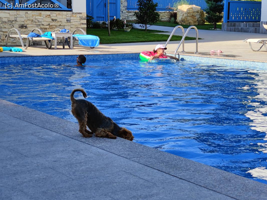 [P36] Pensiunea Briza Mării; cățelușa familiei bea apă din piscină