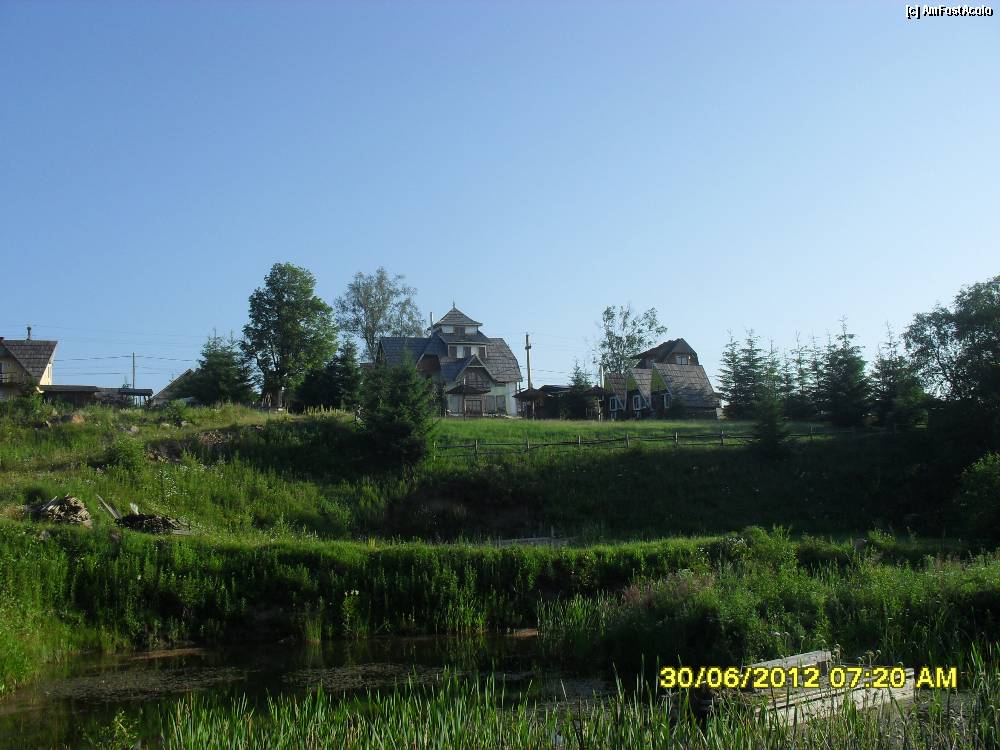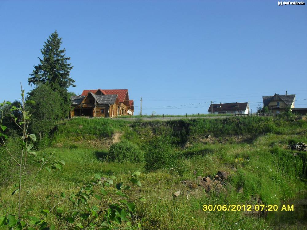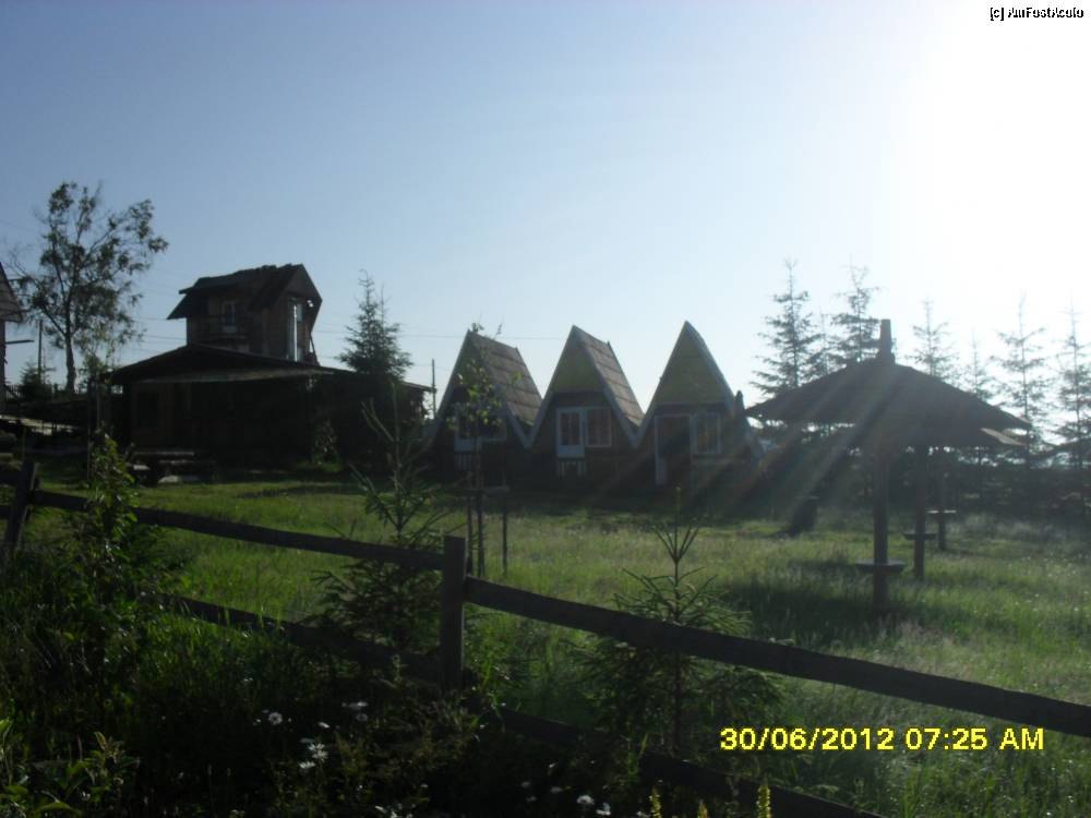 [P28] pensiunea si casutele vazute dinspre padure in plimbarea mea dimineata devreme.