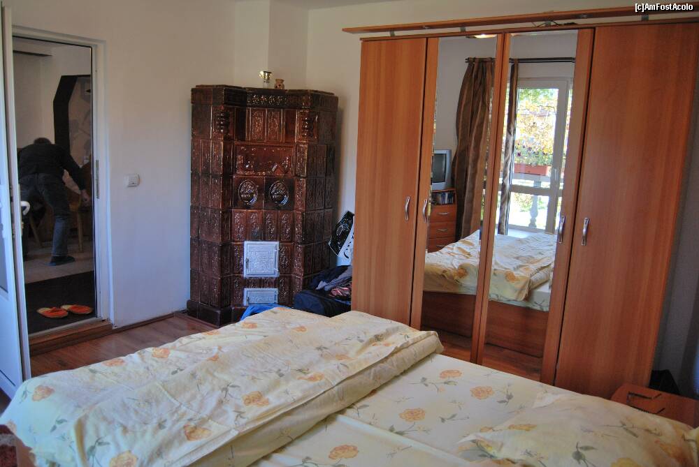 [P14] Camera noastra. N-aveam baie, insa ne bucuram de sifonierul cu lucrurile gazdei si de soba devenita inutila. Pe peretele opus, exista un calorifer care arde, de-a dreptul cateva ore, pentru ca, apoi, sa se raceasca definitiv...
