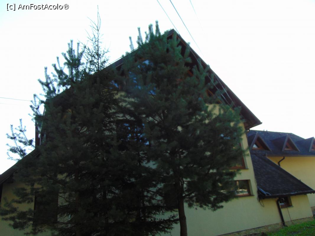 [P15] Partea din spate a pensiunii, unde la etaj erau camerele noastre . Vedere din parcare .