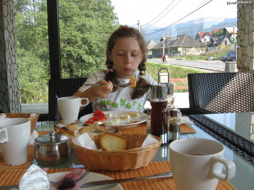 [P03] Cunoscatorii..simt "mirosul" acestui moment in care fiica-mea a acumulat multa sanatate (SIC!) la Stana Lupului! Un parau limpede, un hotel de calitate superioara(mobilier nou, culori BUNE, asternuturi excelente,.."BOOMERANG"..,micul dejun cu ochiuri de oua cum n-a mancat inainte..de bune ce erau !)