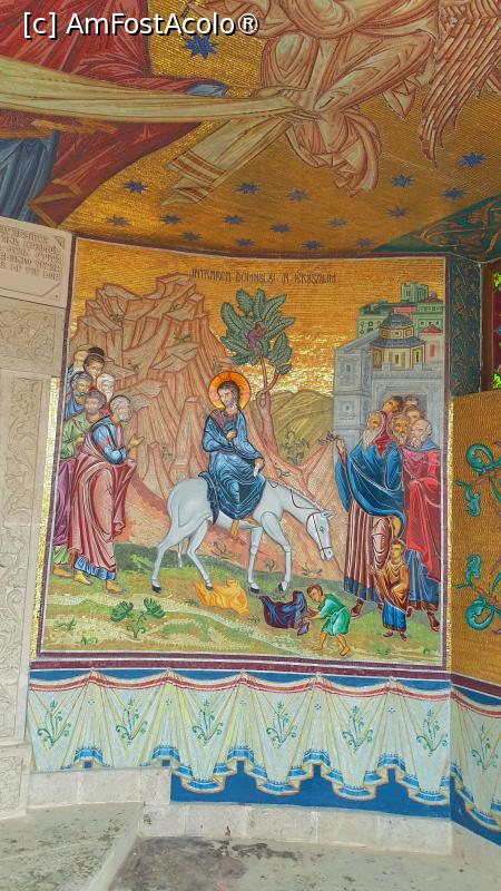 [P45] Biserica dintr-o Piatră - pictura exterioară din pridvor: Intrarea Domnului în Ierusalim - hramul bisericii
