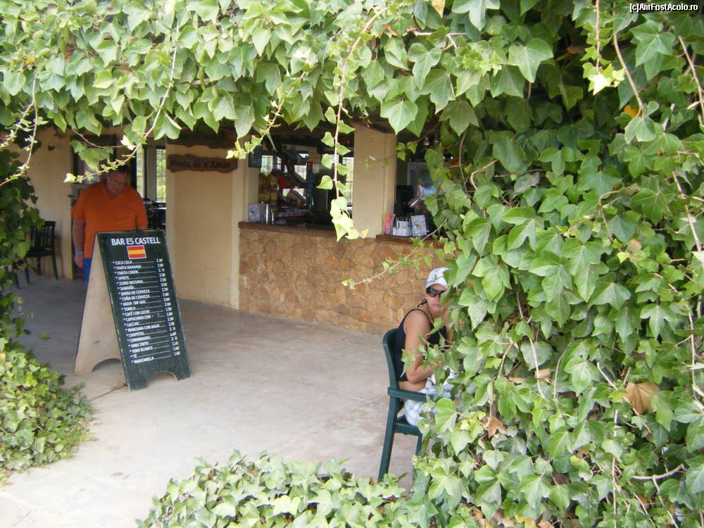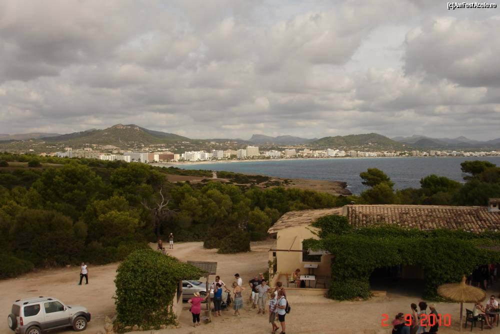[P19] Castel de la Punta de NʹAmer - privelişte de pe acoperiş spre Cala Millor. In construcţia mică din stâga erau doi papagali ghiduşi iar în dreapta era un bar cu terasa