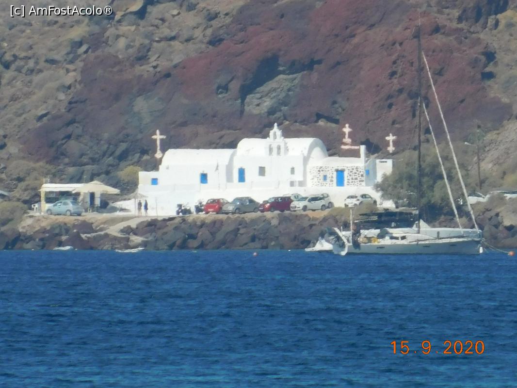 [P28] Cu zoom-ul surprindem de la plaja Vlichada biserica Agios Nikolaos din apropierea plajei Roşii