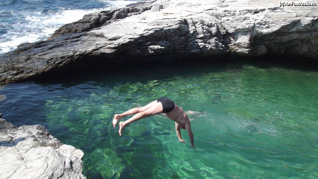 [P04] un salt urias pentru mine (si mic pentru omenire) in piscina naturala Giola. Adancimea este de 6-7 metri (nu am reusit sa ma scufund pana la fund) dar nu recomand salturile direct in cap: m-am intalnit in spital, cu cineva care a fost cu o sapt. inaintea mea, care a sarit in cap si l-a spart gospodareste.