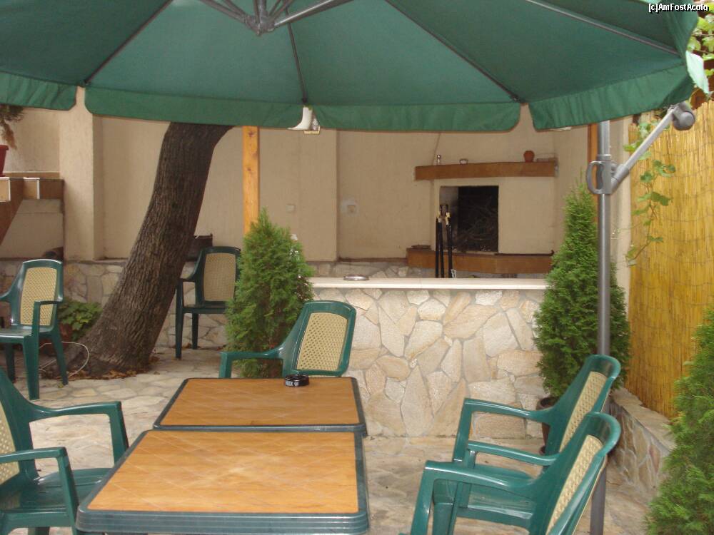 [P22] In curte , in spate exista si cateva mese acoperite la nevoie , un gratar si un fel de bar