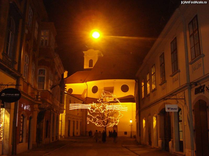 [P20] Gyor cu ornamente pe toate strazile, in dec.2008, (in fundal o biserica)
