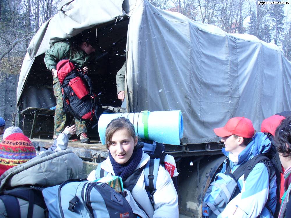 [P01] Grup de cercetasi,anul 2003,din Sinaia, mijloc de transport pana la Bolboci, camion militar