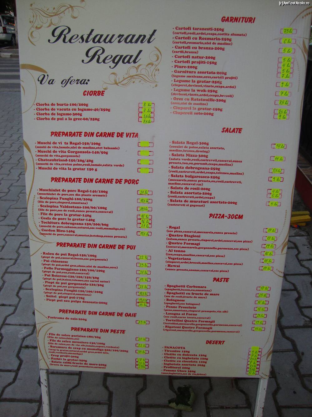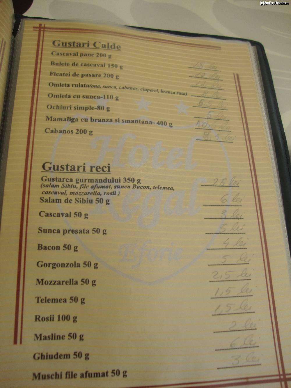 [P27] Prețuri la restaurantul hotelului Regal.