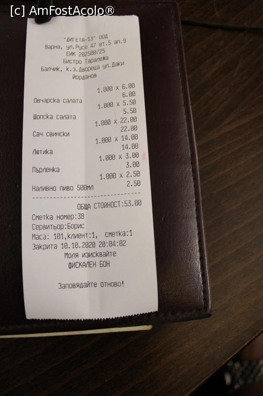 [P12] Balcic, Restaurantul „Ariciu”, Nota de plată...