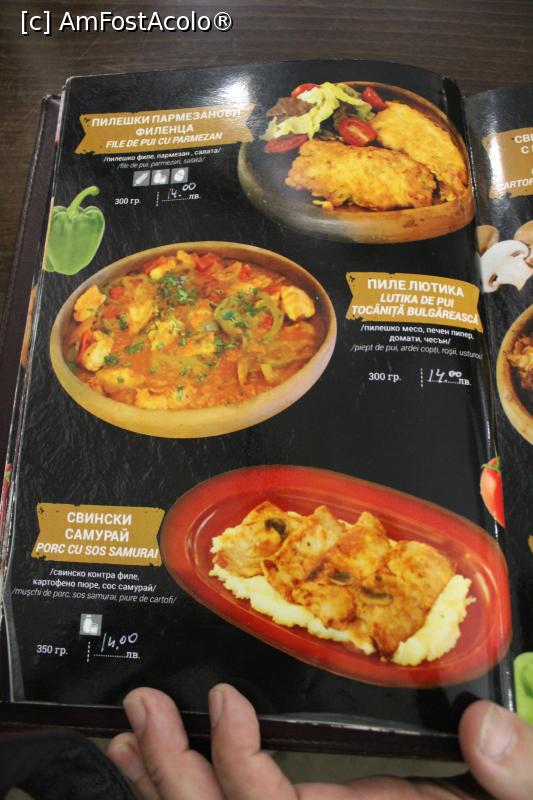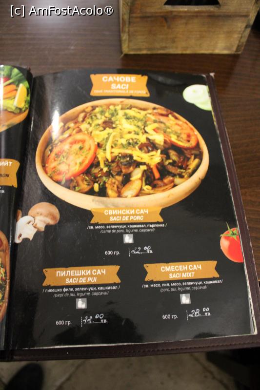 [P15] Balcic, Restaurantul „Ariciu”, Meniul, „Saci” de porc, de pui sau mixt