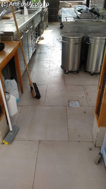[P02] Poza a pardoselii din bucătăria selectului Restaurant SAGO by Cătălin Scarlatescu -cu invitația de pofta buna.