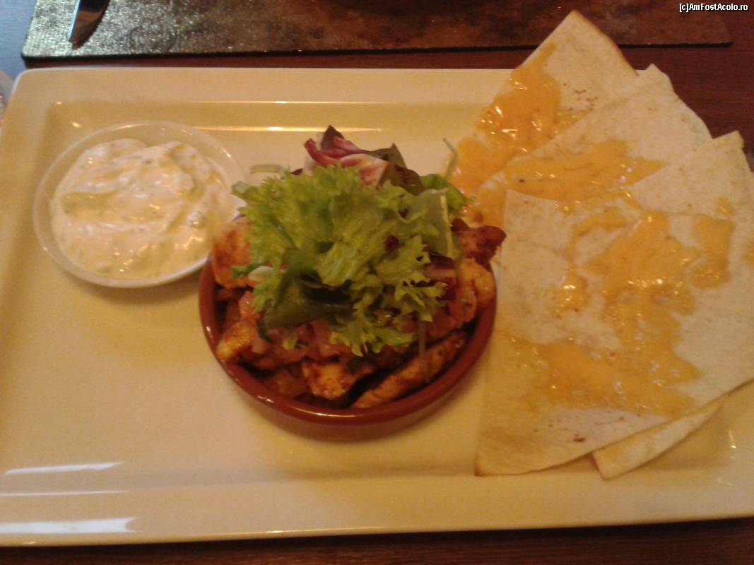 [P10] The Hub - un restaurant de business - tacos de pui picant cu salsa de roşii, ardei, fasole roşie, porumb şi smântână, servit cu tortilla caldă cu cheddar.