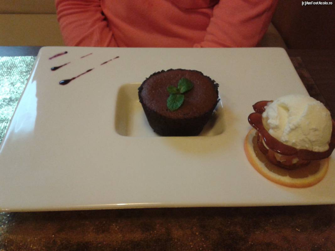 [P11] The Hub - un restaurant de business - fondant cald cu ciocolată servit cu îngheţată de vanilie în coşuleţ de caramel.