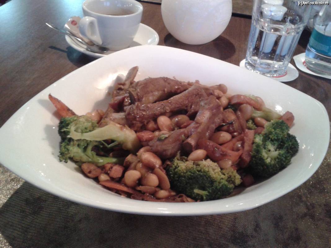 [P08] The Hub - un restaurant de business - costiţe de porc cu fasole boabe, brocoli, bacon şi o discretă aromă de soia - ce am primit în farfurie...