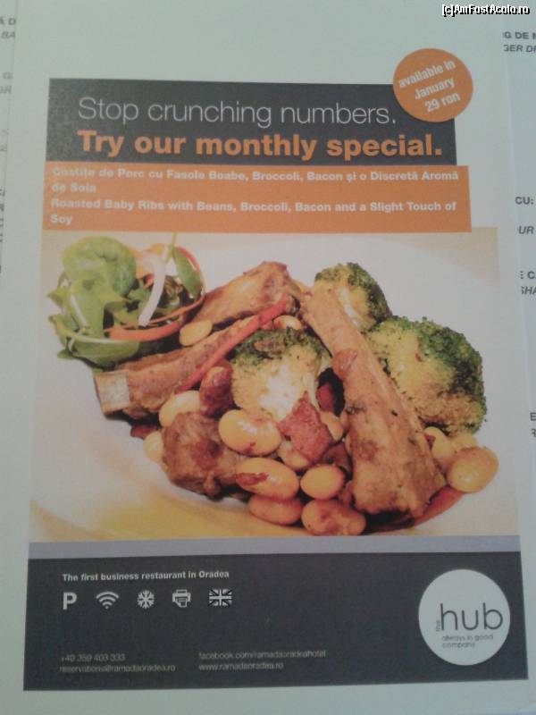 [P09] The Hub - un restaurant de business - costiţe de porc cu fasole boabe, brocoli, bacon şi o discretă aromă de soia - pliantul de prezentare :)