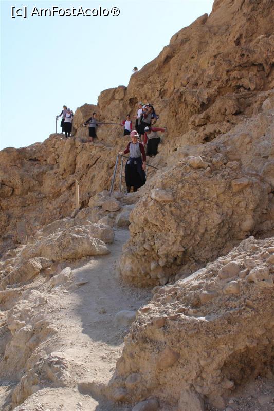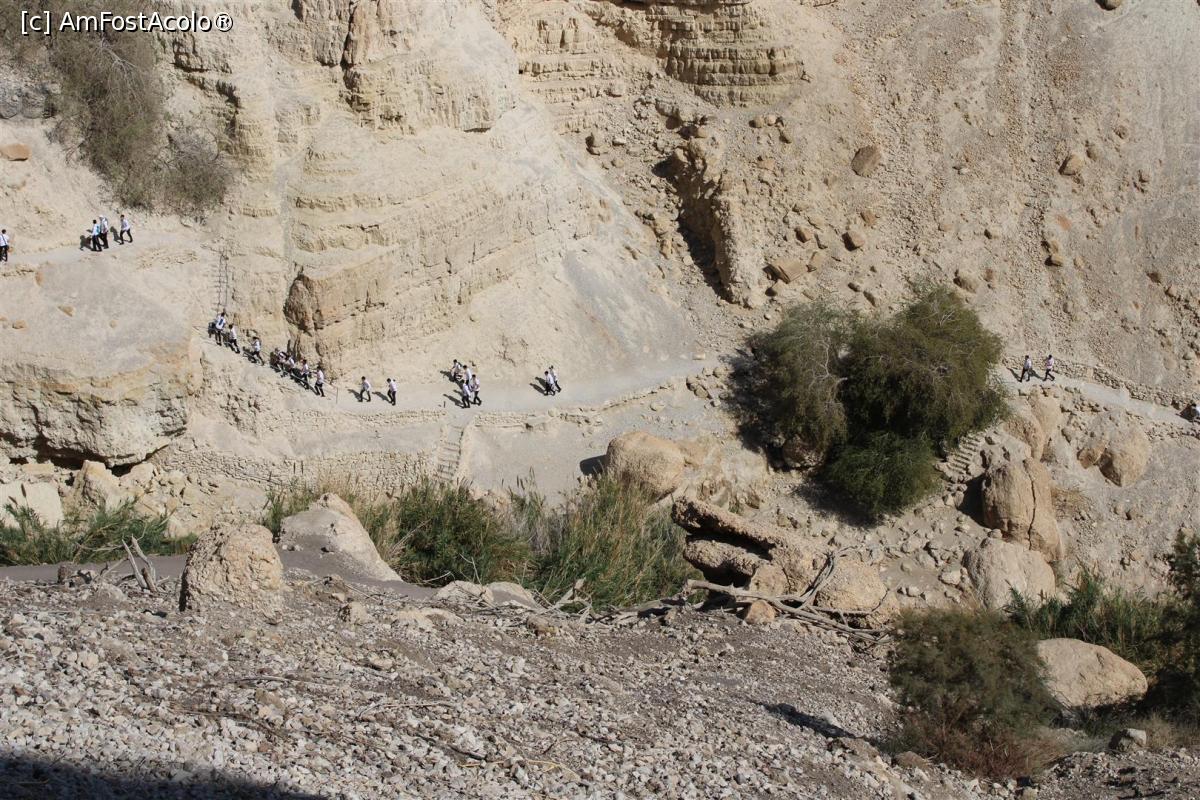 [P33] En Gedi, Urcăm spre Shulammit' s Spring, mulți coboară, era un grup numeros de fete însoțite de profesori, zona cu balustradă