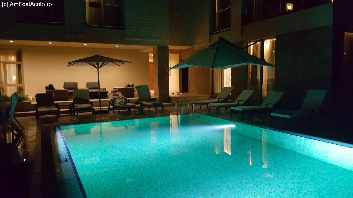 [P01] Vedere inspre piscina hotelului vazuta din lobby.