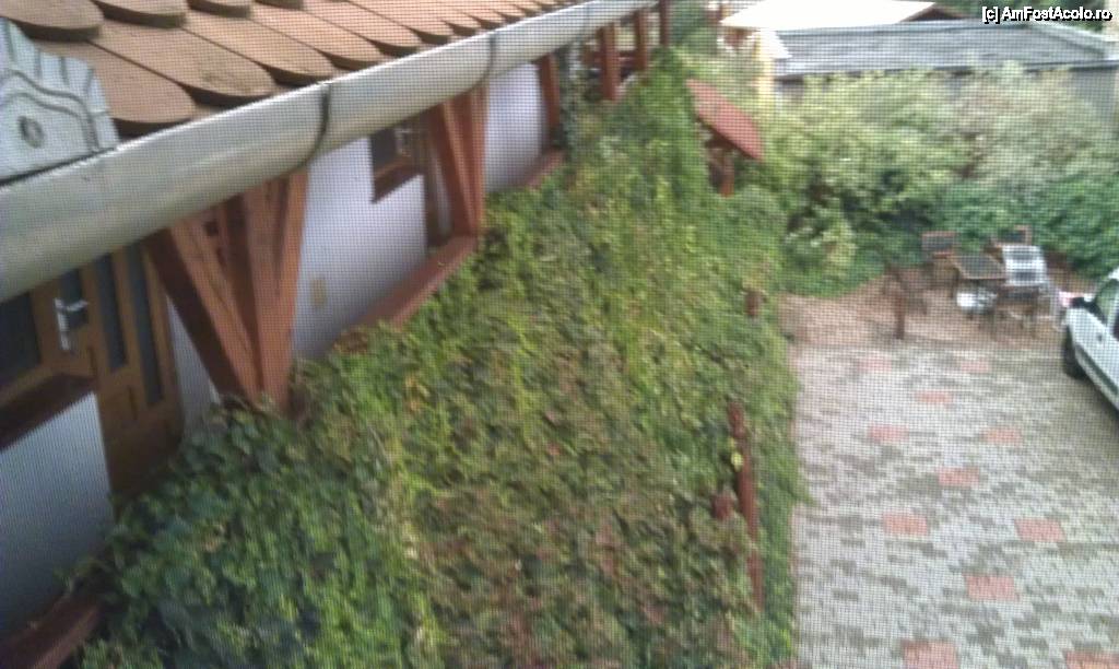 [P06] Curtea pensiunii Rozsakert Apartmanhaz din Hajduszoboszlo, Ungaria, văzută din cameră.