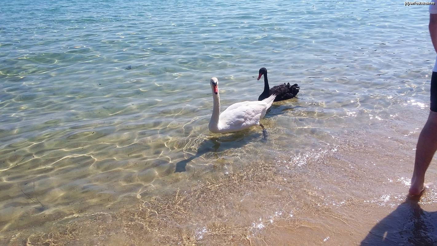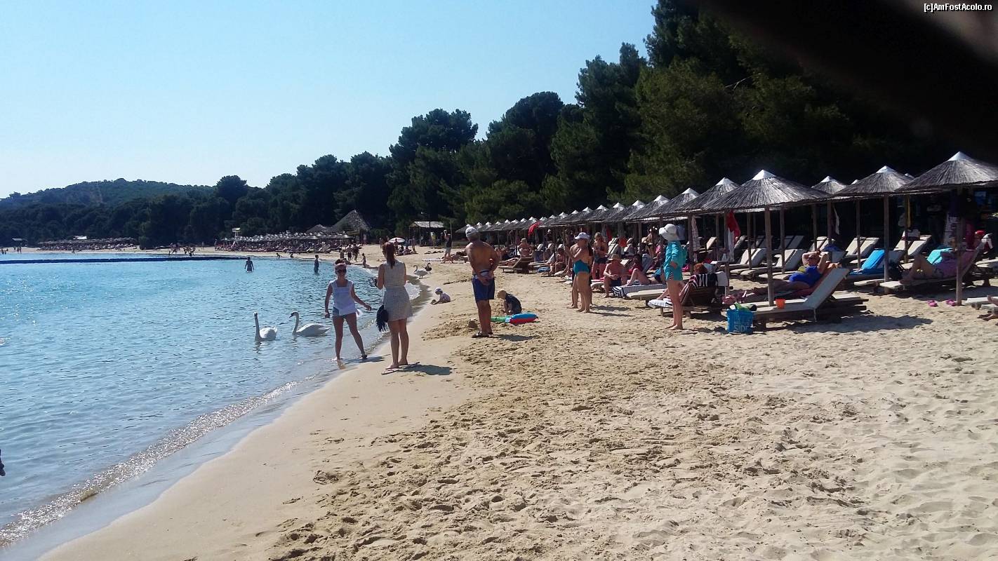 [P36] Plaja Koukounaries - lebedele înotau fără grijă în apa mării, nefiind deloc speriate de turiștii care le admirau și fotografiau